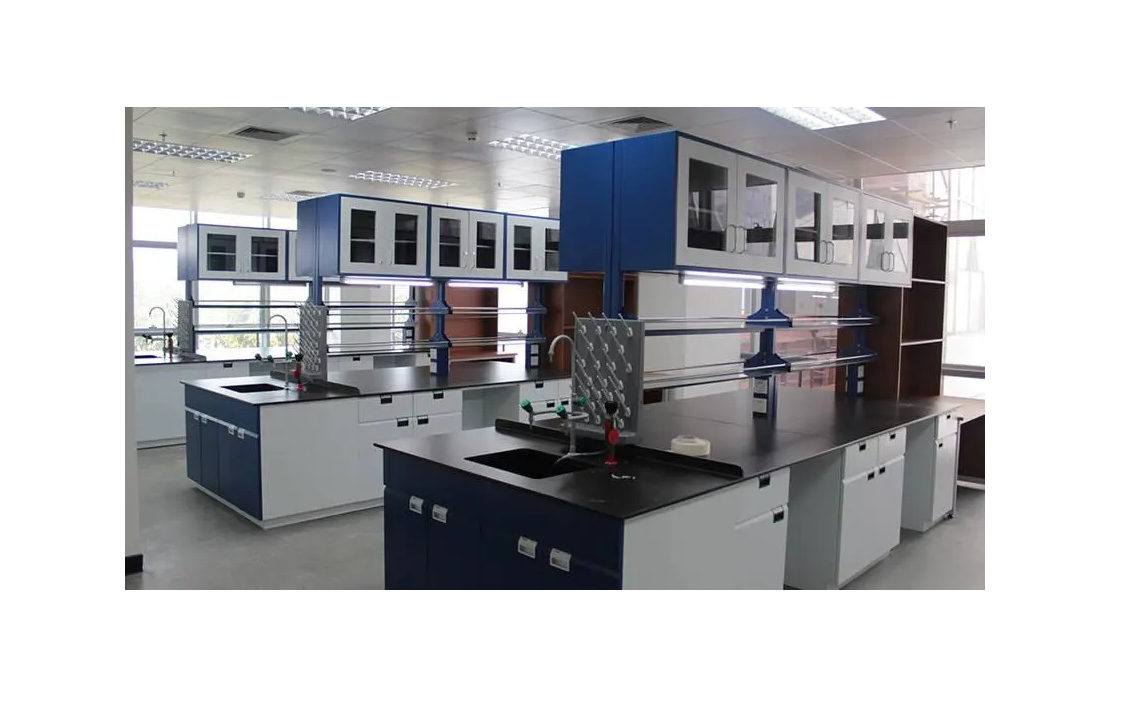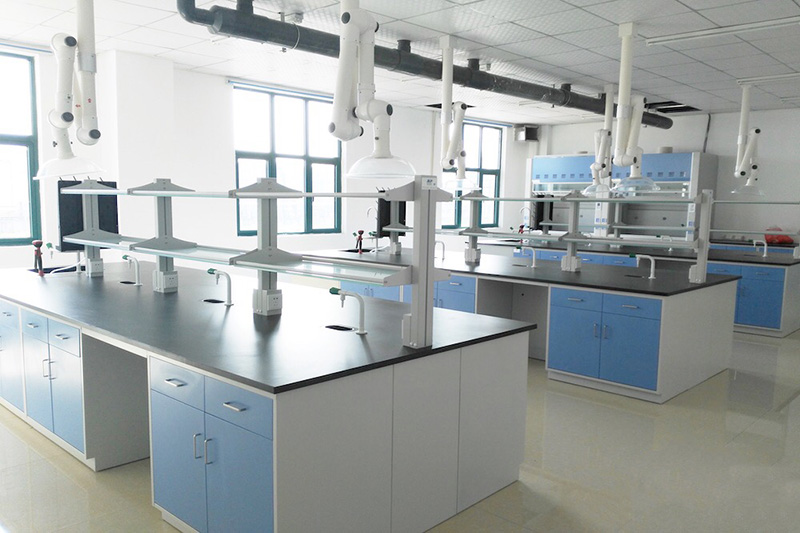 實驗室中央通常設置中央實驗臺,臺上設置試劑架,中央實驗臺的縱向側面或中間設置洗滌臺 (洗滌臺設置靠近水源)。中央實驗臺的正向和縱向一側設置試驗邊臺、試劑架、組合架、吊柜等,另一側靠墻設置通風柜 (通風柜的位置應便于通風管道的連接)、干燥架、藥品柜、器皿柜。大門的左側通常放置安全設備,洗眼器、滅火器等。試驗臺與側墻之間的凈距不應小于1.20m,與大門的凈距不應小于1.20m。