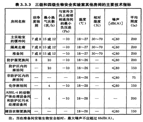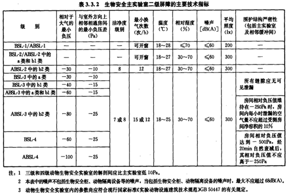 生物安全實驗室主要技術(shù)指標應(yīng)滿足下表要求: